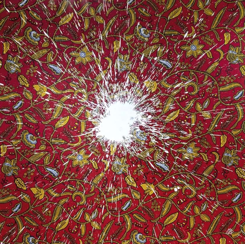 Lors de sa résidence sénégalaise, Victor Knipping s’est immergé dans les usages et les symboliques du tissu wax, matériau identitaire et social, porteur d’histoires et de mémoires collectives. S’articule alors une réflexion plus large sur la transmission et la tradition. À travers une esthétique familière — celle des motifs traditionnels, de la céramique et des territoires — Victor Knipping engage le spectateur dans une expérience de reconnaissance immédiate. Mais cette reconnaissance est rapidement troublée par des projections et des coulures qui viennent brouiller la lecture des formes, créer des décalages, fissurer la surface du motif. Ces gestes plastiques traduisent la matérialisation des luttes LGBTQIA+ : ils perturbent l’ordre établi, révèlent des résistances, et ouvrent un espace de réinvention.