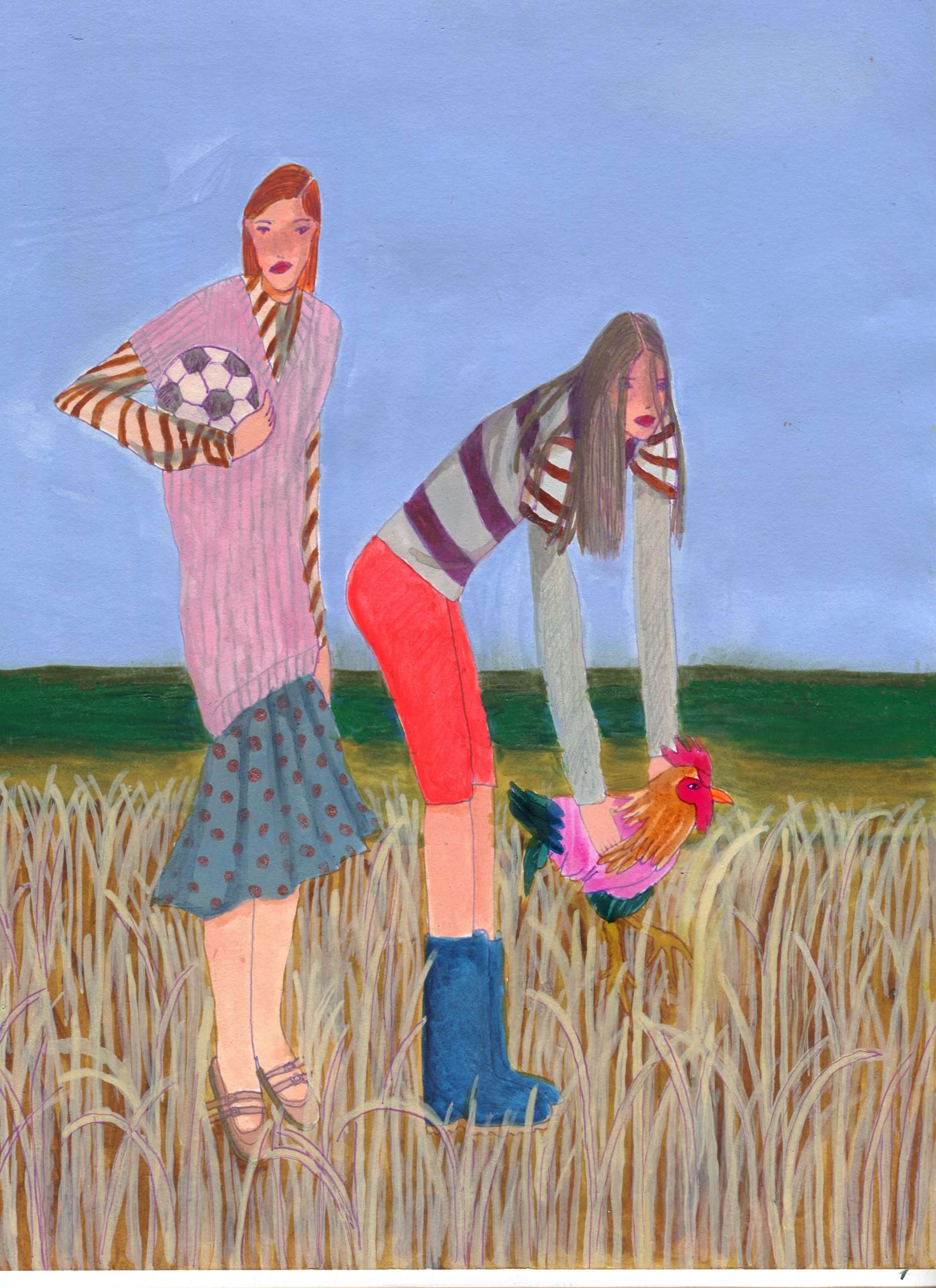 Pour Gabrielle, la « maison » évoque davantage notre territoire, le village, l’espace extérieur, élargi autour de la maison. Les raccourcis connus par cœur qui nous y mènent,se dérober des autres, de leur regard parmi les sapins – car il y a toujours des yeux aux fenêtres, écouter attentivement la pluie et le bruissement des feuilles. C’est imaginer une présence furtive au son d’une branche qui craque, inventer des objets-témoins du passage vers un autre monde à partir de sève, de coquille d’escargot ou d’écorce. C’est un lieu où femmes et fées se réunissent pour penser à d’autres possibles. La « maison » se déploie comme un espace de réparation. À l’intérieur de celui-ci, Gabrielle met en scène des figures féminines et fictives issues d’un univers rural oscillant entre Twin Peaks et les contes et légendes de Franche-Comté. Inspirées du personnage de la Loglady de la série de David Lynch, les femmes apparaissent comme les gardiennes de leur territoire, mystérieuses et rusées, tissant des liens entre elles – qu’elles soient amies ou amantes, et protégeant le paysage qui les entoure.